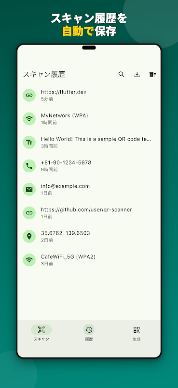 - Lịch sử quét: Tự động lưu kết quả quét và xem lại bất cứ lúc nào.