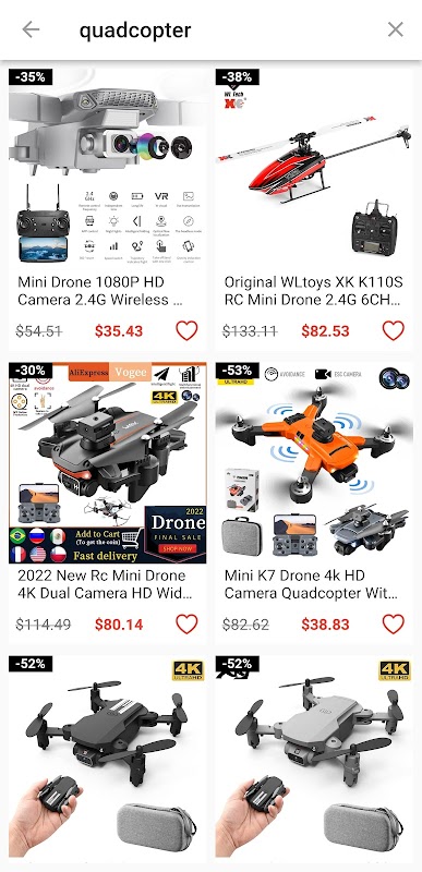 với thiết kế đẹp mắt và trực quan của chúng tôi, bạn sẽ tận hưởng trải nghiệm mua sắm trực tuyến của mình trong ứng dụng của chúng tôi. Mua máy bay không người lái tốt nhất với máy ảnh 4k chưa bao giờ đơn giản và thú vị hơn thế. Thêm đồ chơi điều khiển từ xa yêu thích của bạn vào danh sách mong muốn và tận hưởng giảm giá mua sắm tuyệt vời.