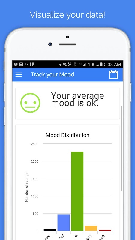 - View mood trends helping to identify triggers for symptoms and identify the potential effects of treatments
