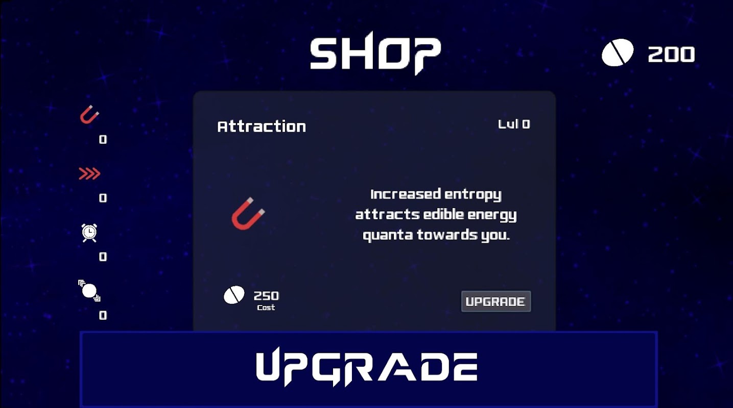 Quantum is a single-player eat and grow game, where you are a particle in a quantum field vying for supremacy. Consume other quanta to gain more energy, but beware of your constantly decreasing mass! While doing this keep collecting and gaining entropy to upgrade!