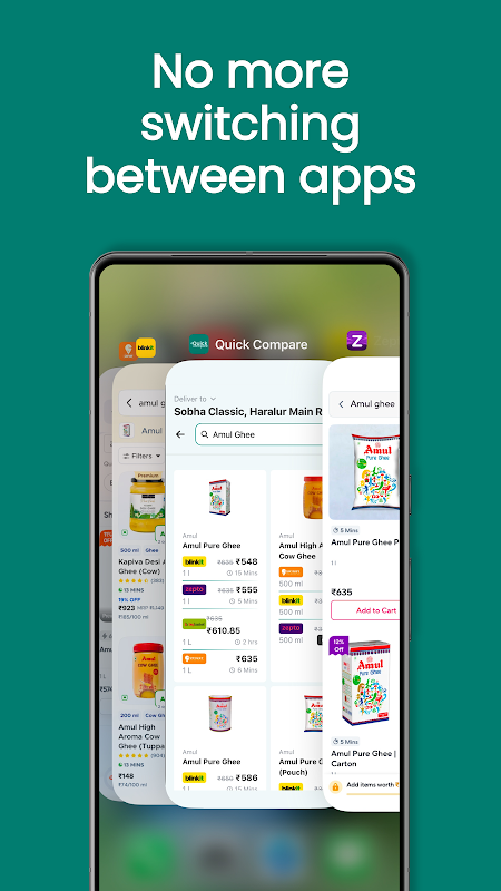 So sánh nhanh giúp bạn tiết kiệm thời gian và tiền bạc bằng cách so sánh ngay lập tức giá cả, thời gian giao hàng và tình trạng còn hàng trên Swiggy Instamart, Zepto, Blinkit, Flipkart Minutes và BigBasket. Với tính năng so sánh giá và ước tính thời gian giao hàng theo thời gian thực, bạn có thể đưa ra quyết định mua sắm thông minh hơn.