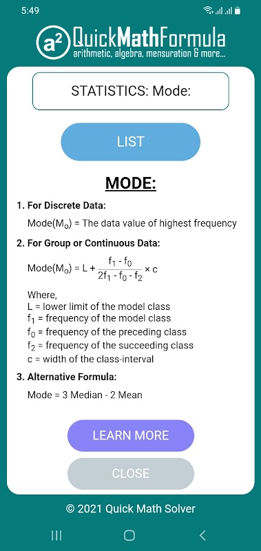 Quick Math Formula là một ứng dụng Android dành cho các công thức toán học của toán học cấp trường. Bạn có thể duyệt qua hầu hết các công thức toán học từ ứng dụng này. Vì vậy, nó rất hữu ích cho việc thực hành toán học và tham chiếu công thức bằng ứng dụng này mọi lúc, mọi nơi trên khắp thế giới.