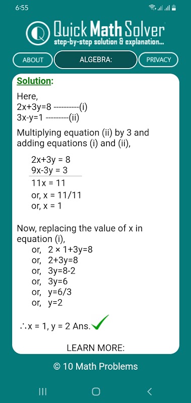 • Nhiều chủ đề toán học: Bao gồm nhiều khái niệm toán học, Quick Math Solver đóng vai trò là một công cụ linh hoạt cho học sinh ở nhiều cấp lớp khác nhau.