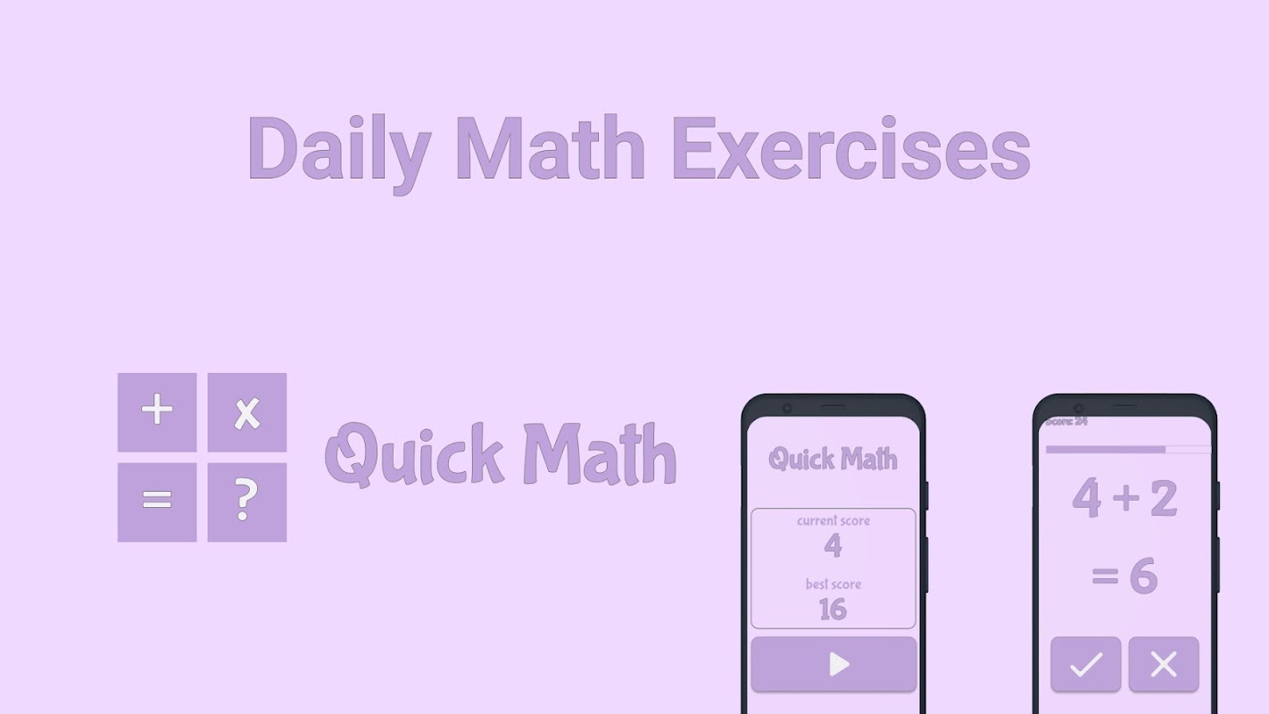 Quick Math will help you improve your math skills and speed. Random questions will present to you for you to evaluate as true or false. For you or or children Quick Math can improve mental calculation capacity with fun. If you ready to become a math genius download now!