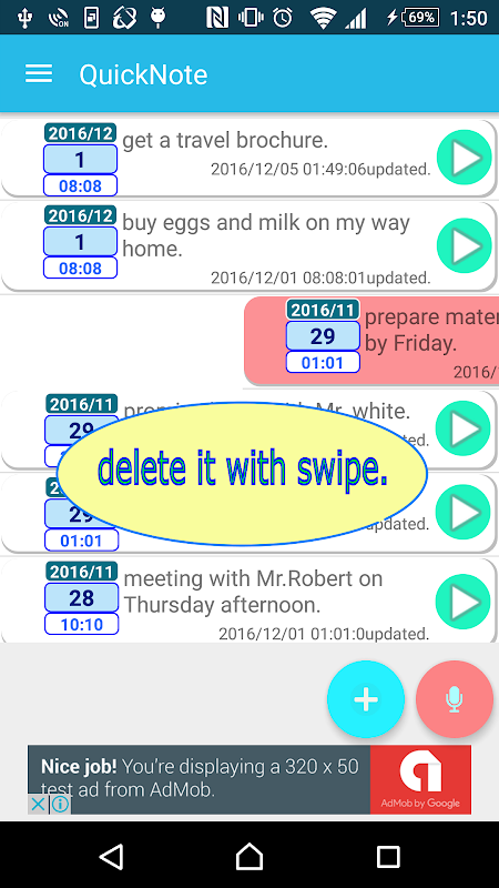 * Dễ dàng xóa nó bằng cách vuốt.
