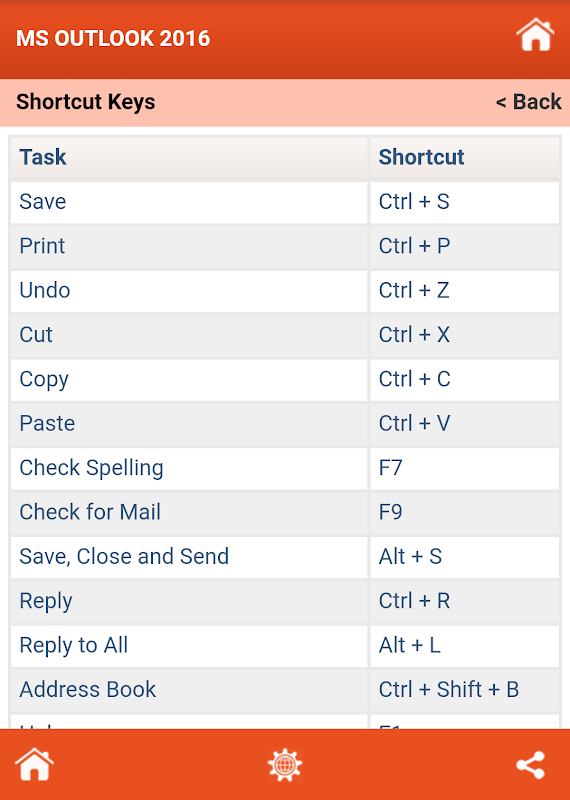 Ứng dụng Hướng dẫn Tham khảo Nhanh chứa các phím tắt Word, Excel, Outlook, Access và PowerPoint được sử dụng thường xuyên để dễ dàng tham khảo.