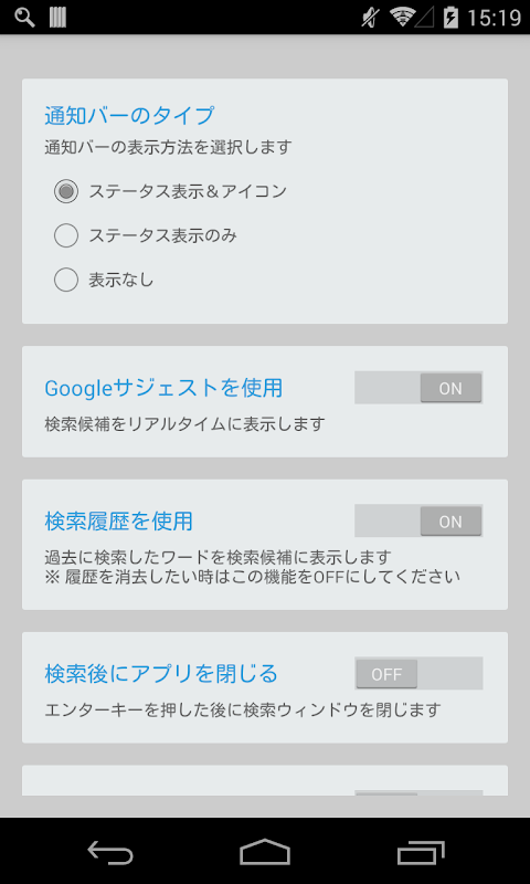 クイック検索はステータスバーから呼び出せる検索アプリです。