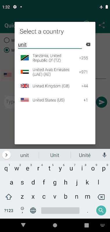 - Chọn mã quốc gia phù hợp của số điện thoại bạn muốn gửi tin nhắn.
