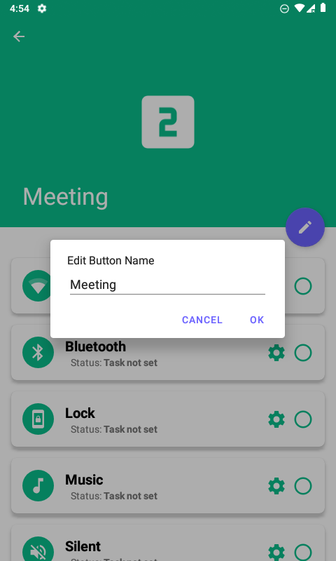 Nhiều nút cấu hình được cung cấp, có thể được cấu hình lại để thực hiện các tác vụ. Các nút được đặt trên các cài đặt nhanh và yêu cầu Android Noughat trở lên. Một trong những tính năng chính của ứng dụng này là, ứng dụng này cho phép bạn thực hiện nhiều chức năng với cùng một nút. Bạn có thể cấu hình một trong nhiều tác vụ được ứng dụng hỗ trợ.