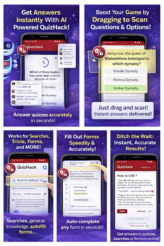 QuizHack là ứng dụng quét màn hình sử dụng trí tuệ nhân tạo (AI) giúp bạn nhận được câu trả lời tức thì từ bất kỳ đâu trên điện thoại.