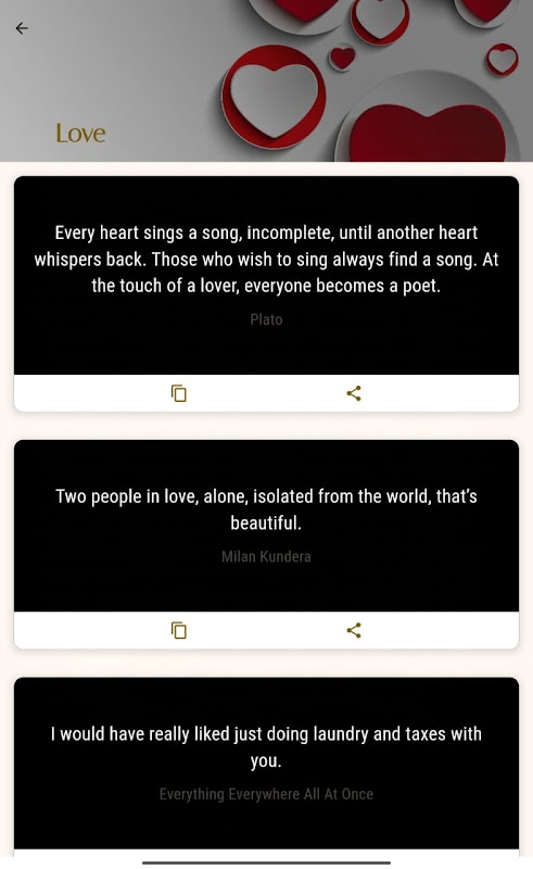 Tùy chọn sao chép và chia sẻ dễ dàng: Sao chép hoặc chia sẻ ngay các trích dẫn lên mạng xã hội, WhatsApp hoặc ứng dụng nhắn tin. Chia sẻ những câu nói truyền cảm hứng một cách liền mạch với bạn bè, gia đình hoặc người theo dõi.