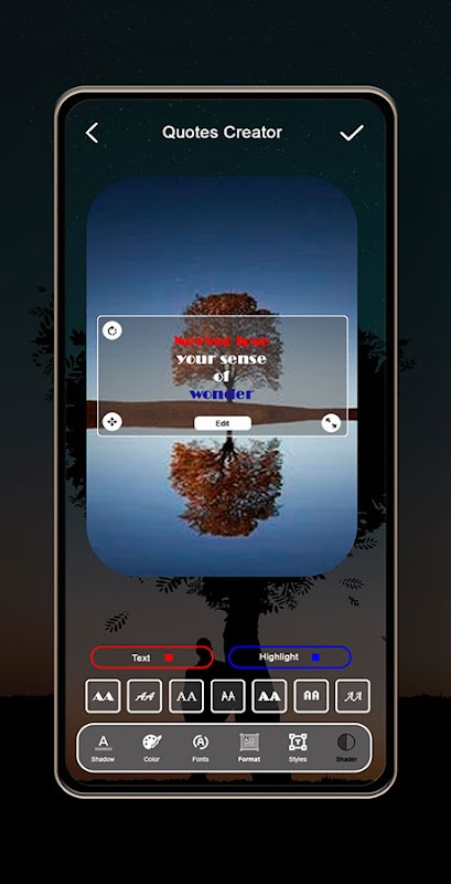 Quotes Creator có bộ sưu tập hơn 2000 câu trích dẫn với hơn 25 danh mục. Vì vậy, bạn có thể tìm thấy nhiều câu trích dẫn vào các danh mục khác nhau. Chúng tôi cũng đã thêm danh mục mới cho Báo giá Giáng sinh cho Giáng sinh này! Bản cập nhật mới nhất cũng có nhiều hình nền mới đặc biệt cho Giáng sinh và Năm mới!