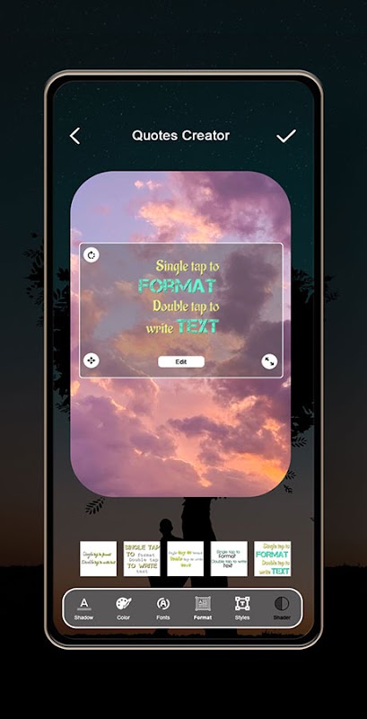 Ứng dụng Thêm Văn bản là công cụ tất cả trong một để tạo văn bản. Văn bản có thể được thêm vào ảnh, gradient, màu đặc hoặc nền trong suốt.