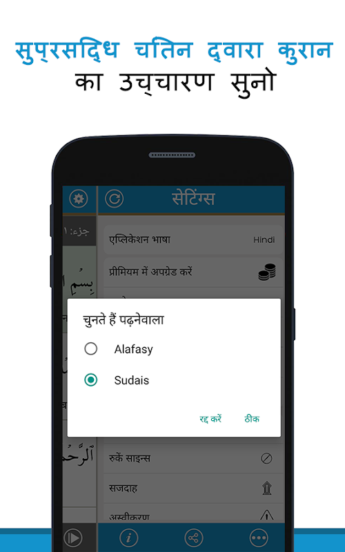 • 13 dòng Quran tính năng, trong đó có 30 Juz cho Tiếng Hin-ddi thuận tiện sử dụng