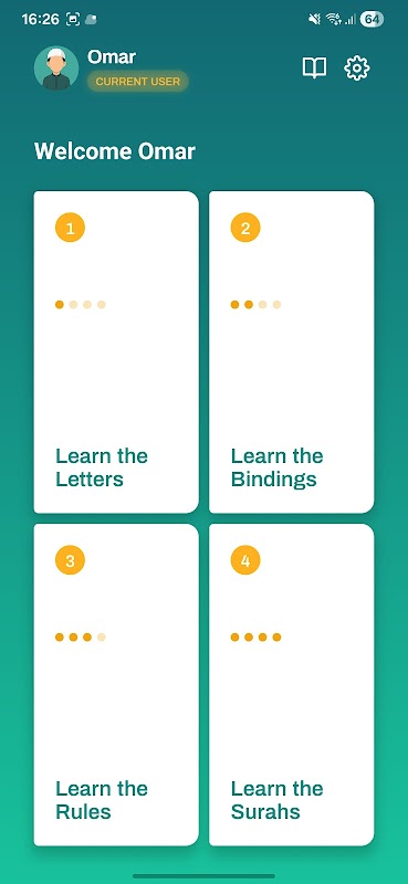 Learn the Allah’s book letters by listening to audios of Alphabet, Bindings, Rules, and Surahs.