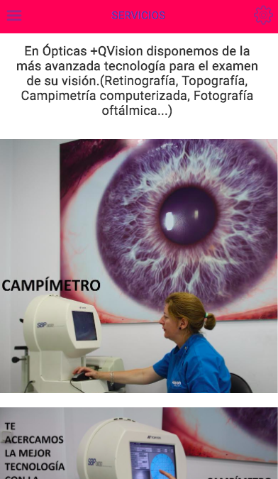 Disponemos de la más avanzada tecnología para el examen de su visión. (Retinografía, Topografía, Campimetría computerizada, Fotografía Oftálmica, etc.Descarga nuestra app y conoce nuestros productos y ofertas.