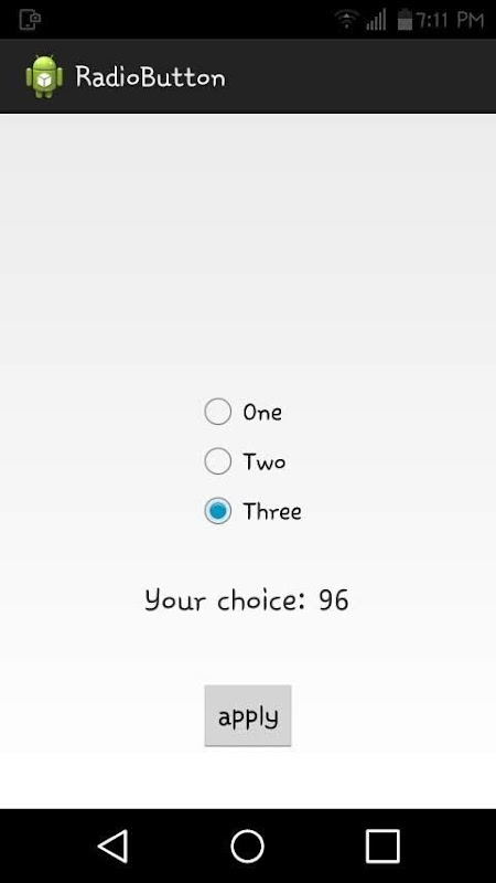 In this app you can justify differents radio button.This app is designed for radio button.
