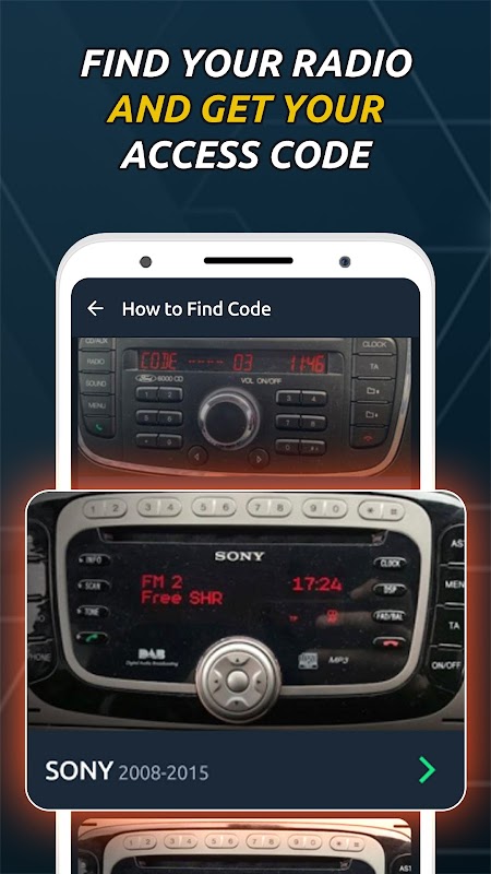 Trình mở mã vô tuyến là một ứng dụng tạo mã âm thanh nổi có thể cung cấp mã mở khóa vô tuyến trên ô tô cho hầu hết các ô tô. Với ứng dụng này, bạn sẽ dễ dàng xác định mã nối tiếp cho đài trên ô tô của mình. Ví dụ: nếu bạn lái chiếc Renault, chỉ cần sử dụng số VIN hoặc số đăng ký để lấy mã radio của bạn.