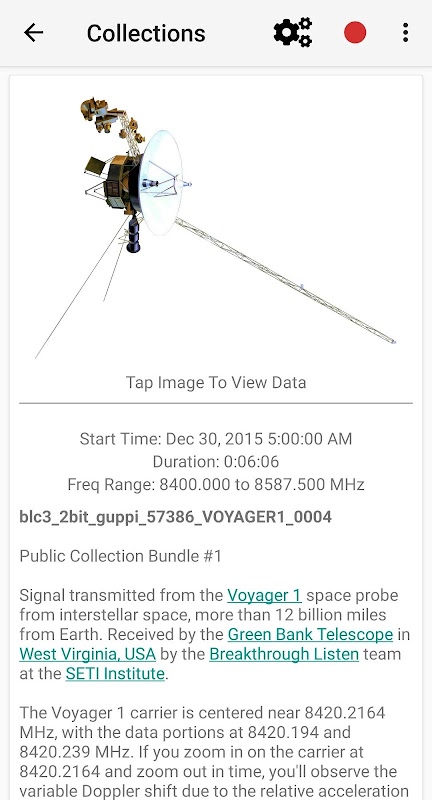 Các bộ dữ liệu dựa trên đám mây của Radwave hiện đang bao gồm dữ liệu từ Nghe đột phá , bao gồm dữ liệu từ Voyager 1 và ‘Oumuamua. Công nghệ lõi Radwave từ cung cấp quyền truy cập 1 độ trễ thấp cho các phổ phổ độ phân giải đầy đủ được tạo từ các tệp GUPPI thô. Bằng cách sử dụng cử chỉ pan / zoom trực quan, bạn có thể dễ dàng khám phá phổ độ phân giải đầy đủ, thao tác thời gian, tần số và màu sắc công suất một cách linh hoạt. Sắp có các bộ dữ liệu được thu thập từ Radwave HQ cho đài FM và các vệ tinh thời tiết NOAA.