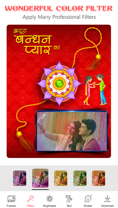 Sử dụng ứng dụng rakhi रक्षाबंधन biên tập khung ảnh tốt nhất Raksha bandhan miễn phí và trang trí hình ảnh của bạn bằng những hiệu ứng đặc biệt đẹp mắt nhất.