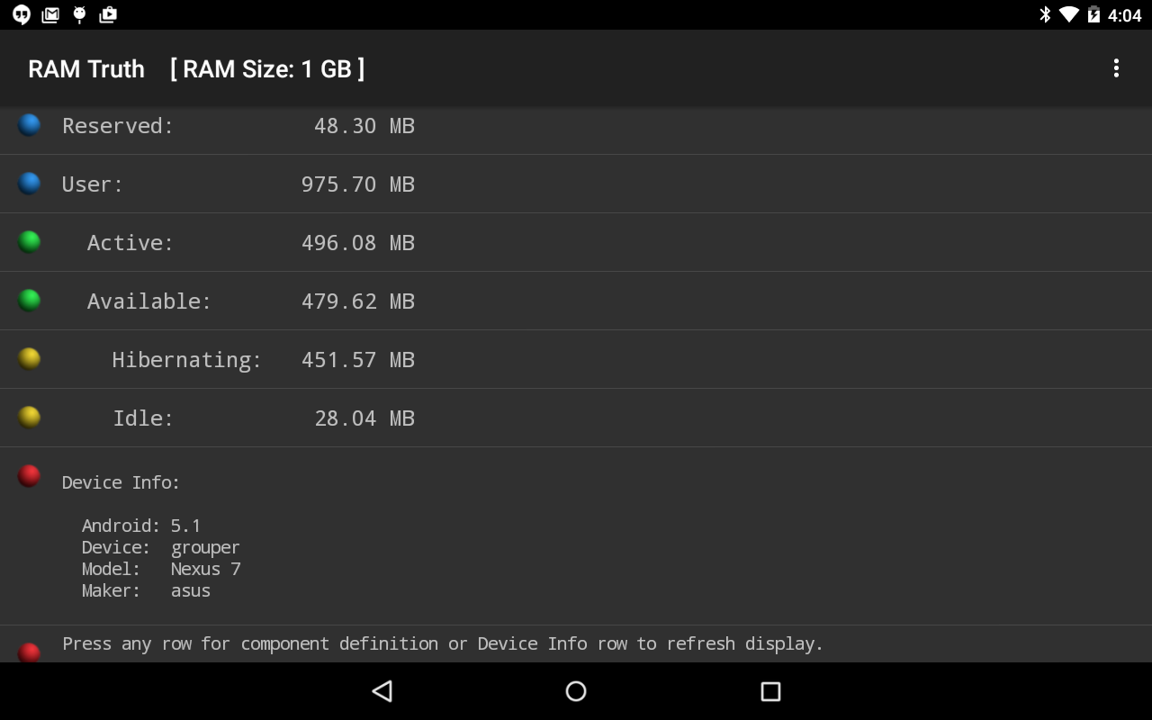 RAM Truth - Một ứng dụng đơn giản để hiển thị các sự cố sau đây của bộ nhớ RAM của thiết bị (bộ nhớ truy cập ngẫu nhiên) bố trí: