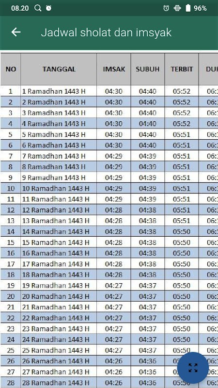 aplikasi ini berisikan jadwal sholat lima waktu , waktu puasa, imsak dan berbuka di bulan ramadhan