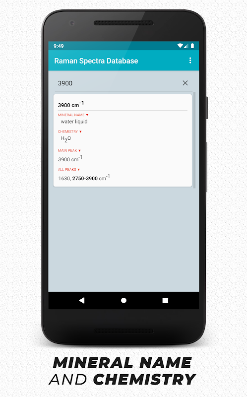 Raman Spectra Database là một ứng dụng Android với hơn 800 mục khoáng sản có thể tìm kiếm đầy đủ. Cơ sở dữ liệu phổ Raman với (các) dải Raman chính, tên khoáng sản, công thức hóa học cho tất cả các khoáng chất. Tìm kiếm theo (các) dải Raman mạnh nhất và / hoặc tên khoáng sản.