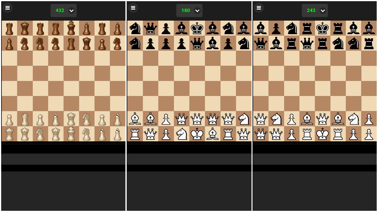 ChessRandom Cờ vua tuân theo các quy tắc của cờ vua thông thường nhưng quân cờ có thể ở bất cứ đâu. Chơi với bất kỳ sự kết hợp của các quân cờ.