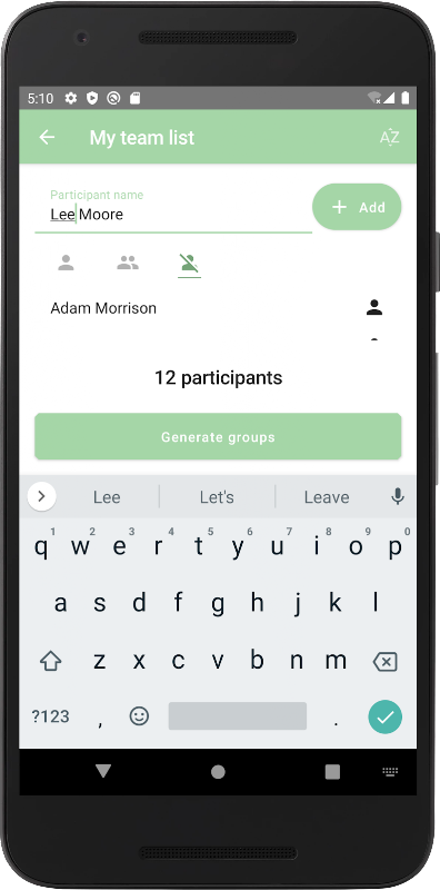 Tạo các nhóm cộng đồng ngẫu nhiên một cách dễ dàng. Tạo và chỉnh sửa danh sách những người tham gia của bạn và tạo các nhóm ngẫu nhiên một cách nhanh chóng.