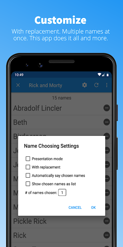 A, ứng dụng đơn giản mạnh mẽ để giúp bạn chọn tên ngẫu nhiên. Tuyệt vời cho giáo viên!