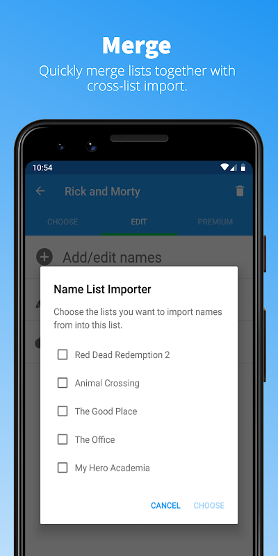- Nhập nhanh chóng và liền mạch danh sách tên từ các tệp .txt trên thiết bị của bạn