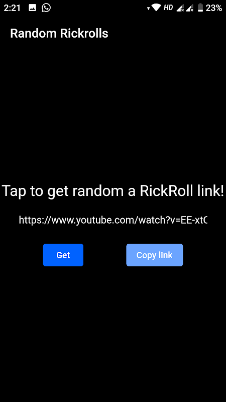 Ứng dụng này sẽ cung cấp cho bạn một liên kết ngẫu nhiên đến bài hát "Never Gonna Give You Up" của Rick Astley.