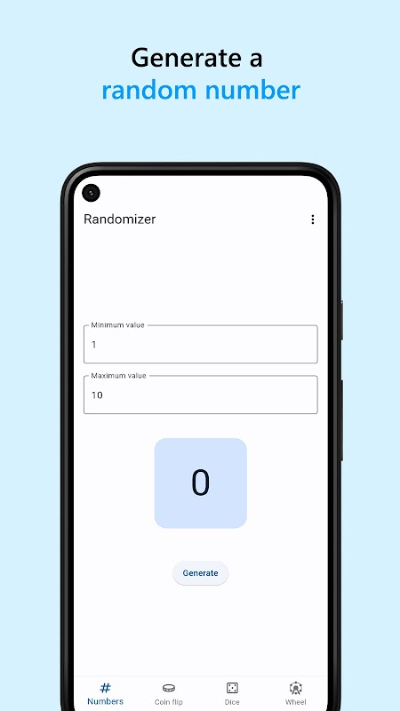 Randomizer là một ứng dụng phong cách và dễ sử dụng, cung cấp cho bạn nhiều công cụ để tạo ra các kết quả ngẫu nhiên. Ứng dụng này cho phép bạn tạo một số ngẫu nhiên, tung đồng xu, tung xúc xắc hoặc chọn một giá trị ngẫu nhiên từ bánh xe chọn. Cho dù bạn cần đưa ra quyết định nhanh chóng hay chỉ đơn giản là tìm kiếm một chút niềm vui, Randomizer sẽ giúp bạn.