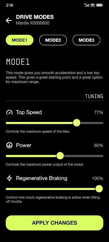 • Điều chỉnh hiệu suất: Tùy chỉnh phản ứng bướm ga, mô-men xoắn, công suất đầu ra và tốc độ tối đa để phù hợp với địa hình và sở thích của bạn.