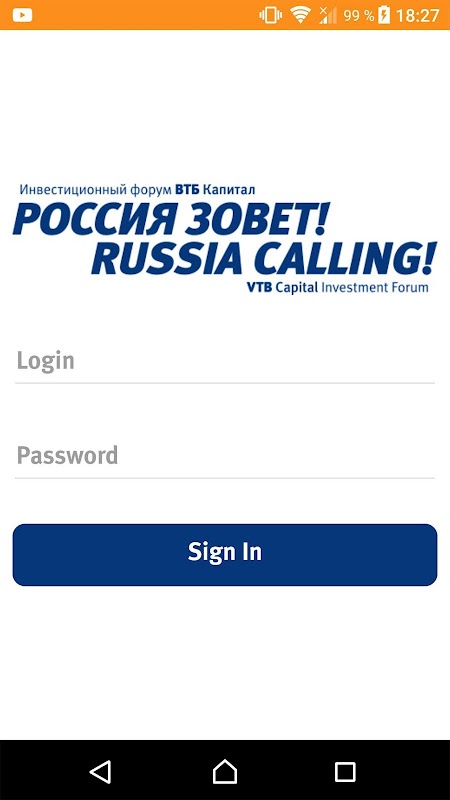Application for VTB Capital Investment Forum RUSSIA CALLING!