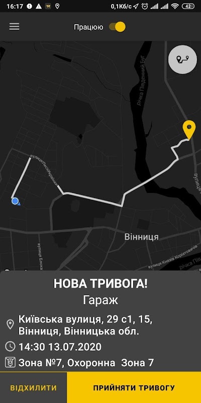 4. Перемикач «Не працюю» блокується для ГШР з активною тривогою.