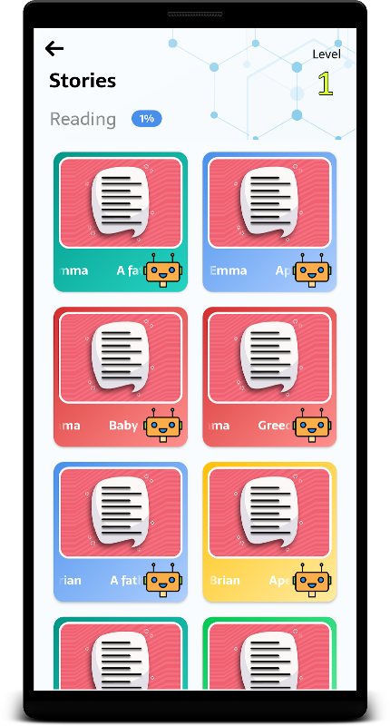 An English learning app that assimilates 20+ years of Pratham's expertise and advanced speech recognition technology to create an engaging learning experience.