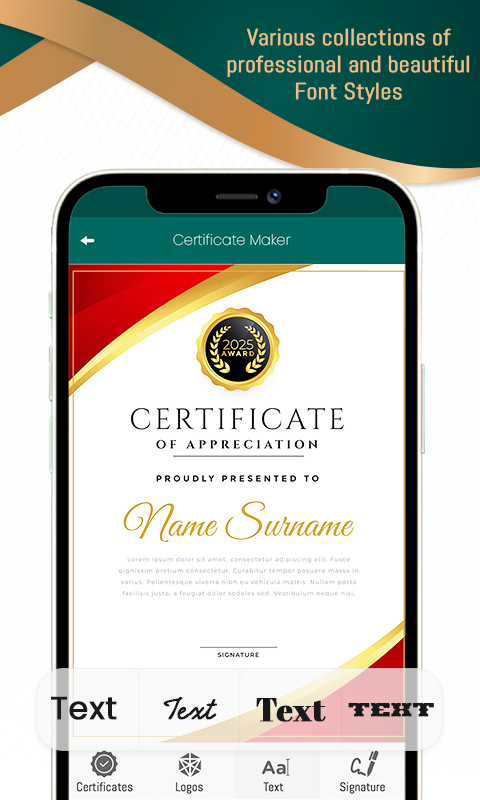 Người tạo chứng chỉ chứa các loại đền thờ chứng chỉ khác nhau, bao gồm các chứng chỉ giải thưởng và có nhiều kiểu văn bản với sự trợ giúp của bạn có thể đưa một số văn bản vào chứng chỉ của mình. Ứng dụng Certificate Maker Pro đi kèm với nội dung đẹp để sử dụng miễn phí!