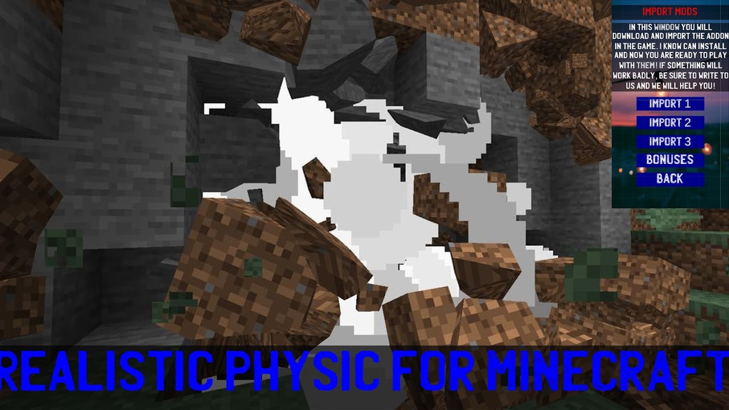😋 Realistic Physic Mod for Minecraft PE will add mods which contains different realistic physics modes with which all objects will move with realistic animation including animals and your friends. Play with this addon in the MCPE world! 😀