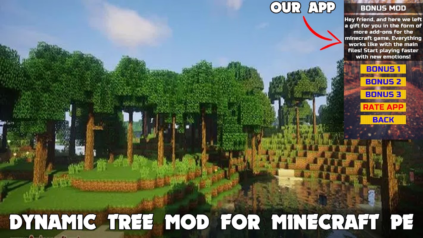 😀🤣Nếu bạn cảm thấy mệt mỏi với phiên bản Minecraft thông thường và muốn đa dạng hóa lối chơi, bạn có thể cài đặt một trong những sửa đổi của chúng tôi. Đây là những gì chúng ta đã nói ở trên. Nhưng đây sẽ không phải là một phần bổ sung thông thường có thêm những con vật tuyệt vời, địa điểm hoặc đạo cụ mới, mà là một bản mod độc đáo. Bạn có thể tải xuống Dynamic Tree Mod luôn được cập nhật cho Minecraft Pocket Edition 2022!🤣😀