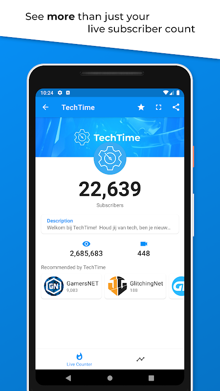 Ứng dụng này cho phép bạn xem số lượng người đăng ký trực tiếp của mình trong thời gian thực!