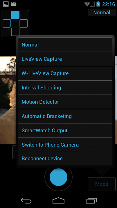 and 'liveview rotate button', a menu for switching to phone camera are included.