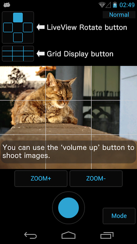 Normal mode for taking pictures. You can use the 'volume up' button to shoot images.