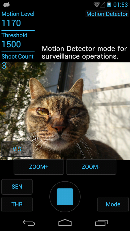 App will take a picture when 'motion level' > 'threshold'.