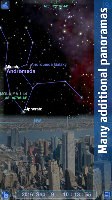 • Discover celestial objects: The app tells you which stars, constellations and planets are currently visible in the night sky from your location; furthermore, it shows you the way to any celestial body you want to study.