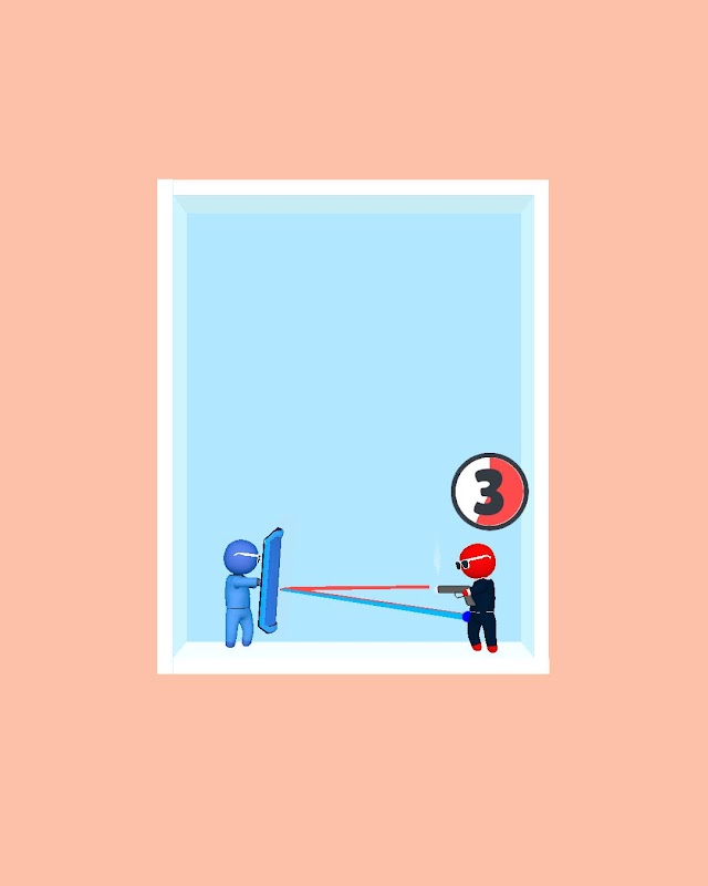 In this game you will controll the stickman with a shield. To win you'll move shield to reflect the bullets of enemys so they be taken down by their own attack.