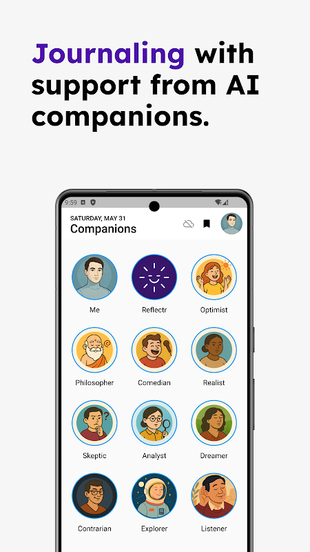 Reflectr không chỉ là một cuốn nhật ký. Đây là không gian chu đáo để tự suy ngẫm, chăm sóc sức khỏe cảm xúc và viết nhật ký chánh niệm - được hỗ trợ bởi những người bạn AI hiểu bạn.
