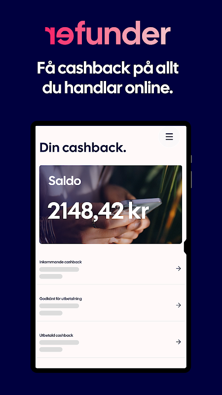 Với Refunder, bạn sẽ nhận được tiền hoàn lại khi mua sắm trực tuyến tại hàng ngàn thương hiệu nổi tiếng. Tải ứng dụng để tận dụng các chương trình khuyến mãi độc quyền được cập nhật hàng tuần và tất nhiên là nhận tiền hoàn lại cho các giao dịch mua sắm của bạn.