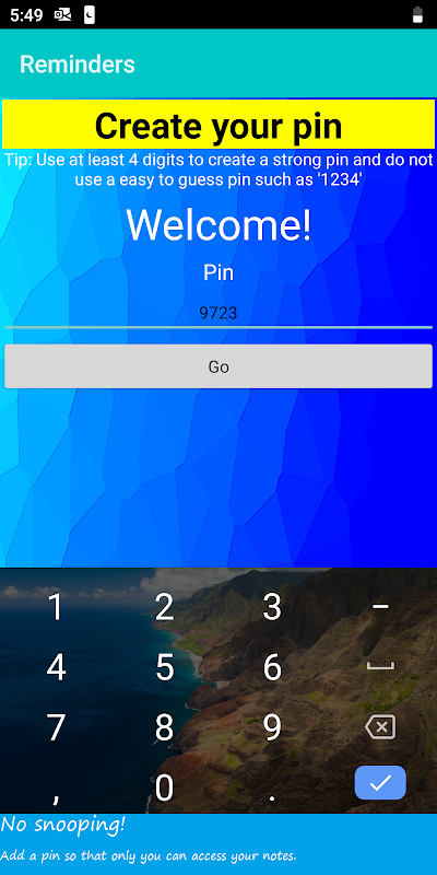 *Enable a pin to protect your notes (optional)
