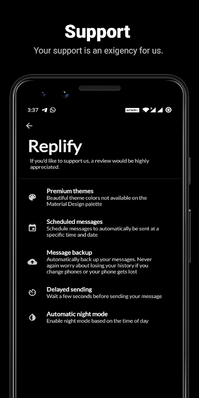 Thay thế cung cấp thông báo tức thì, trả lời thông minh và thiết kế tối giản nhưng hiện đại giúp nhắn tin nhanh hơn và thú vị hơn. Với chế độ tối, bạn có thể sử dụng Tin nhắn thoải mái trong các tình huống ánh sáng yếu.